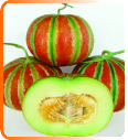 HARMADHU Pear shape big fruit 65–68 days Light green with dark green strips, light green flesh Pear shaped 1.2–1.5 kg 11–12% TSS