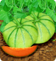 F1 – SUWARNA Vigorous vines with green foliage 70–75 days Golden yellow fruit with deep orange aromatic flesh High round big fruit 1.8–2.0 kg Sweetness 12–13Β° Brix