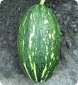 F1 – UDAY Semi dwarf vines with green leaves 100–110 days Oval shape, deep green with cream spots Whitish yellow, thick flesh 5.0–7.0 kg Suitable for spring to summer season